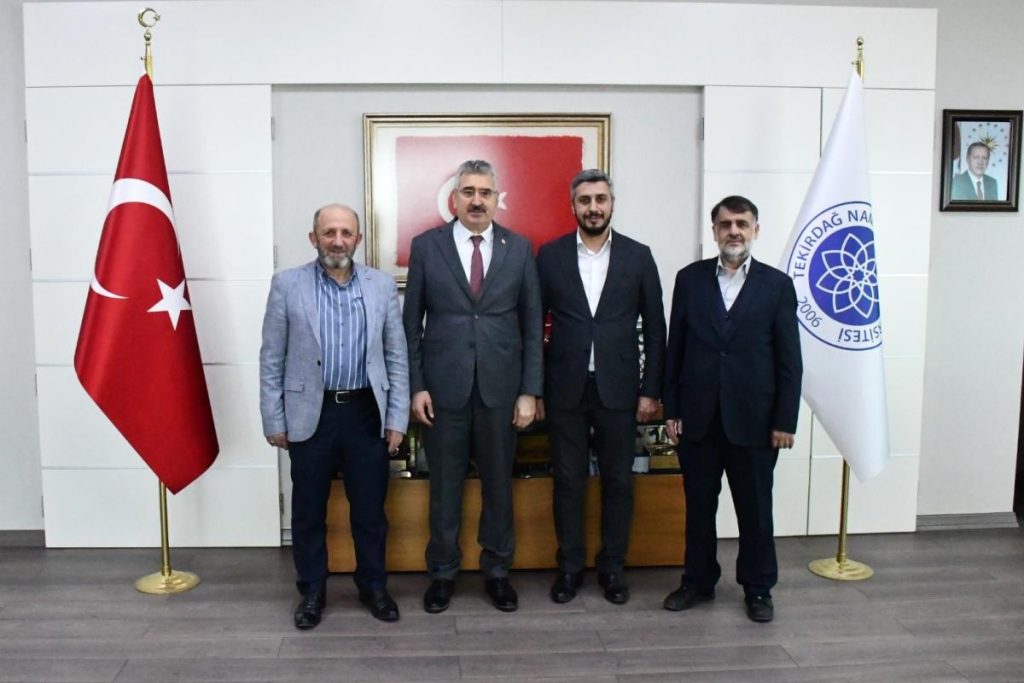 Eğitime Destek Platformu Tekirdağ İl Başkanı Bayram AKIN, Eğitime Destek Platformu Tekirdağ Kurucu Başkanı ve İl Başkan Yardımcısı Hüseyin SİVRİ, Eğitime Destek Platformu Çerkezköy İlçe Başkanı Ercan ERDOĞAN ve Hayrat Vakfı Tekirdağ İl Temsilcisi Rıdvan GENÇ, Namık Kemal Üniversitesi Rektörü Prof. Dr. Mümin ŞAHİN’i ziyaret etti.