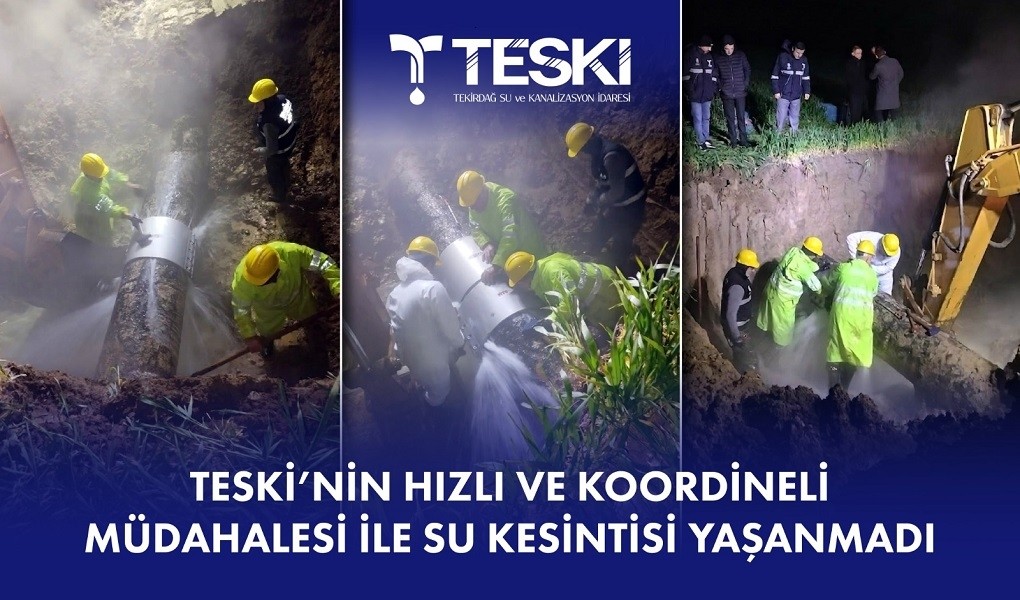 Kısa sürede bölgeye ulaşan TESKİ ekipleri, arızanın tespiti, kazı çalışması, onarım ve hattın yeniden devreye alınması süreçlerini sabaha kadar süren zorlu ve teknik çalışmayla koordineli bir şekilde tamamlayarak su hizmetinin kesintisiz devam etmesini ve vatandaşlara hissettirilmeden arızanın giderilmesini sağladı.